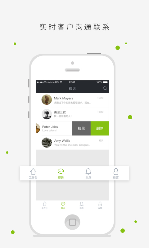轻松绑定店铺老板/员工的个人关联账号,实时与客户沟通联系