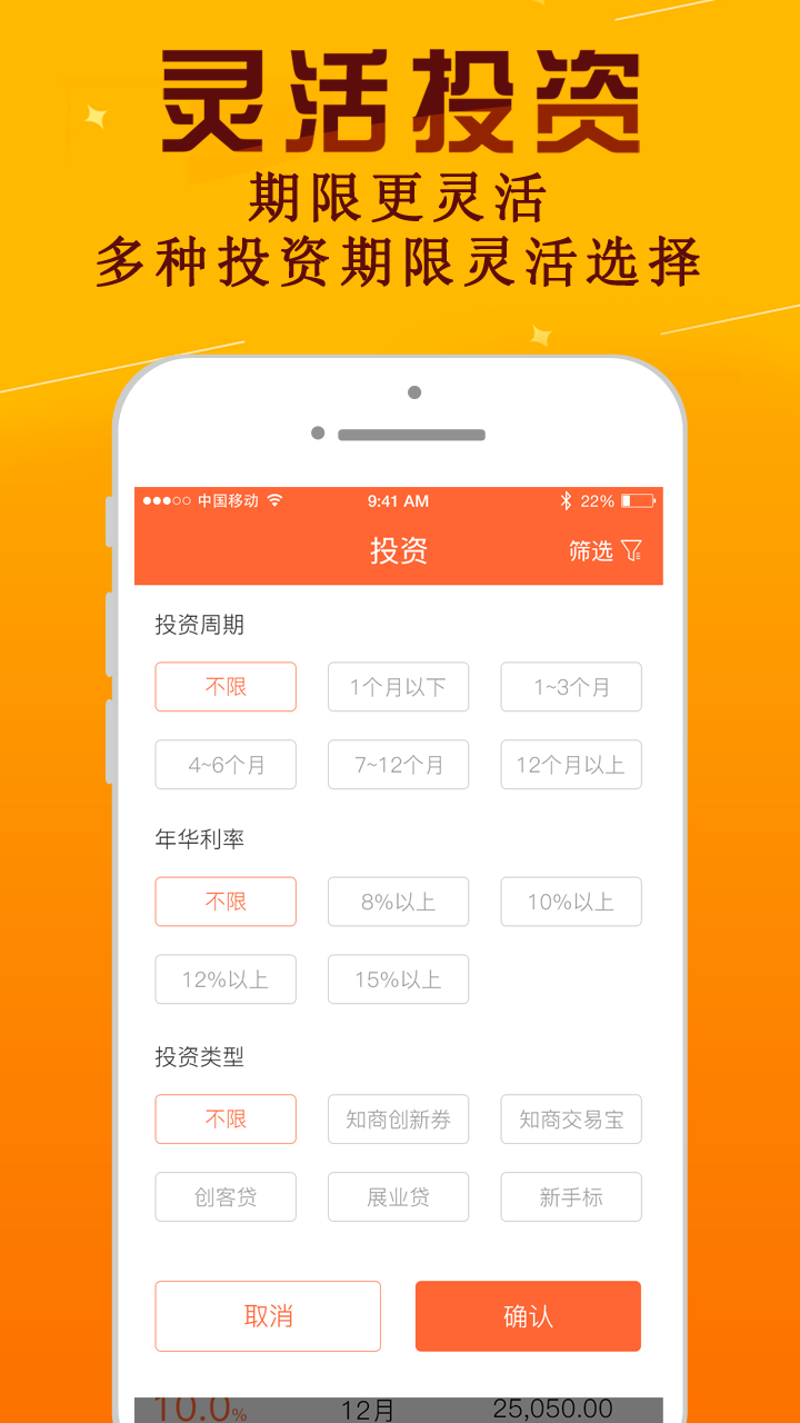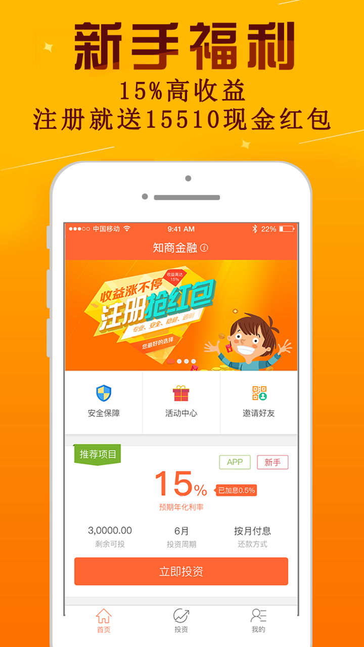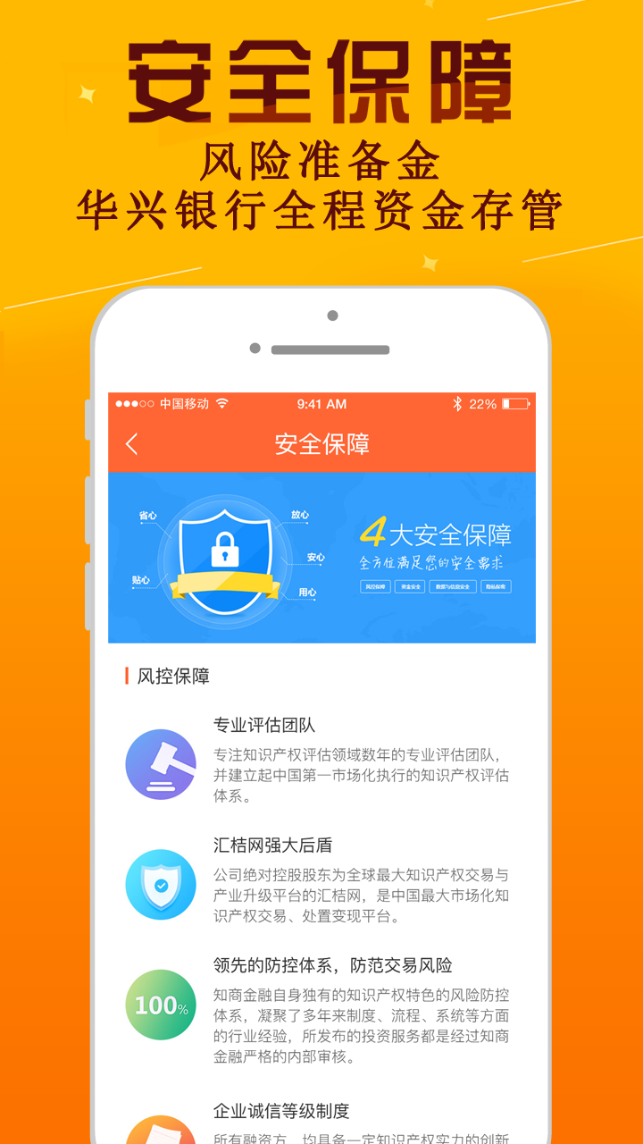 知商金融,中国首家互联网知识产权金融平台,由汇桔网联合厚朴实业创立,注册资本1亿元人民币,低门槛100元起投,投资期限灵活,产品种类多样,预期年化利益5%-15%,华兴银行资金存管,第三方专业机构担保,千万级风险准备金,安全有保障,更值得信赖。理财好福利:12月19日-31日,15%加息短标每天准点开抢啦~一次投资双重奖励,现金/购物卡奖不停!还有更多精彩理财投资福利等你拿!
