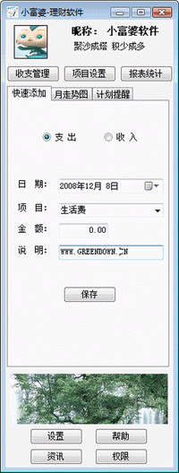 拥有小富婆家庭管理软件,为你的生活精打细算,为你的生活添加色彩,每天的生活都少不了费用的支出,很多人在不知不觉中所支出的费用却不知道何去何从,让小富婆帮你,只要您轻松按键,为您的明天的生活提供依据