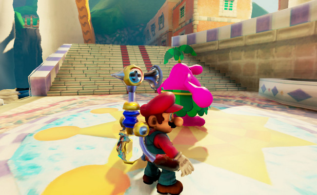 这款阳光马里奥游戏中发生的舞台是南方的一小岛(相当于地球上的夏威夷),马里奥一行人本来是去这个著名的避暑胜地消夏旅游的,谁知到了岛上面发现不知道是谁,把漂亮的小岛弄得乌烟瘴气,污水泛滥。更吃惊的是,据岛上面的居民的讲述,犯人居然和马里奥长得一模一样? 为了洗清冤屈,为了早一点开始度假,也为了自身的正义感,马里奥背上用于清扫的水枪,再次踏上冒险的旅程,游戏中的全新画面以及经典的冒险元素都十分吸引人【使用方法】