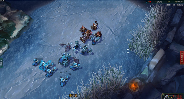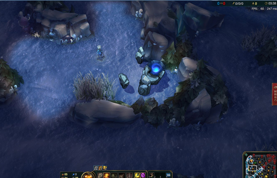 接下来,小编带大家来到的了红蓝buff的地方了,这两个是打野英雄首先要面对的地方,这个地方也是 很大的变化,首先草丛被披上了厚厚的冰霜效果,三个怪物也做了重做,都是树枝加错的感觉,带有明显的幽暗的特点,这个也是为了配合主题。另野区的道路都给冰封了,还做了一些简单的处理,让人感觉更加有冰河世纪的感觉。