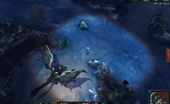 然后来看看大小龙吧,大小龙所在的河道,完全被冰封,草木被冰霜覆盖,河道内的水草颜色也被过滤掉,而大龙因为需要时间,小编没截到图,小龙则截图了,和其他野怪一样了,做了单独的修改。