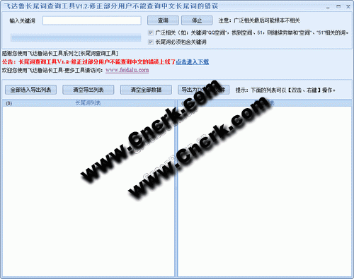 飞达鲁长尾词查询工具是一款针对网络编辑和站长的关键字查询的专业工具,方便网站从业者或者是SEO专业人员快速找到适合自己的关键字,拉升排名,推动流量!