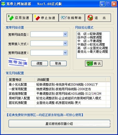 宽带加速器 v7.6 绿色免费版 宽带加速器是一款永久免费的综合性网络加速软件,它采用目前最先进和流行的互联网加速技术,可有效解决网络延迟问题,加快用户访问网页速度,避免网络游戏中有可能出现的顿卡,掉线的情况。