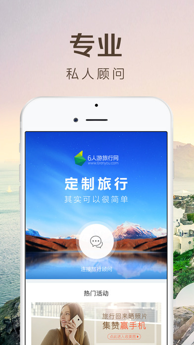 6人游旅行app是一款主打高品质小团队旅行服务的移动应用。6人游旅行app以专业的旅行顾问服务为价值核心,倡导服务先行、诚信经营。期望用户通过6人游的服务,重新认识旅行。【软件特点】