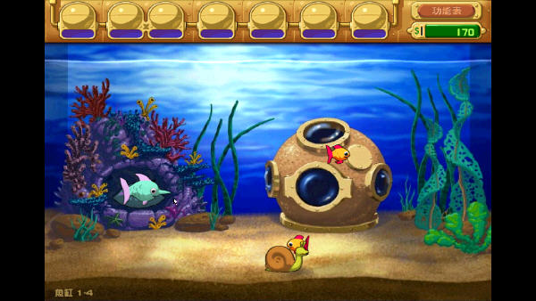 游戏目标:喂养小鱼,收集金币,并击退海怪。