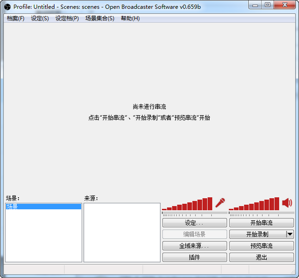 5、添加场景及来源开始直播,点击开始串流即可开始直播。