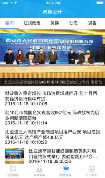 西安审批服务是一款集在线办事与在线新闻政策浏览的应用,他同时为用户提供了在线咨询投诉,查询办件进度等人性化的功能,便于用户反馈自己的建议与意见。基本实现部分事项的网上预受理和预审查。即办事企业或群众通过手机可以预先将申报材料提交到窗口工作人员办公计算机,窗口人员通过网络对申报材料全不全、准不准进行预审查,答复后办事企业或群众再到窗口一次性提交申报材料,变群众跑腿为信息跑路,变被动服务为主动服务