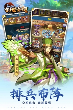 《创世兵魂》是一款以Q梦三国为主题的RPG手游。游戏以经典故事为依托,融入与其他盟国争夺三国霸主地位的情节。玩家能够招募众多三国知名人物组建自己的队伍,并对其属性进行培养,使其愈发强大,助力自己征战四方。同时,玩家还能打造多样化的配套阵容,体验实时PVP,感受最纯粹的战略游戏乐趣。快来体验吧!