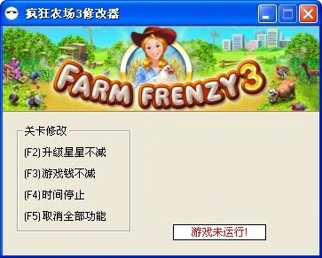 疯狂农场3修改器 绿色免费版 疯狂农场3修改器是一款针对同名游戏开发的辅助工具,它可以修改哟西中星星数量、金币数量,也可以让游戏时间停止,帮助玩家解决后面关卡难度比较大,难以通关的难题,让游戏更加轻松自如。