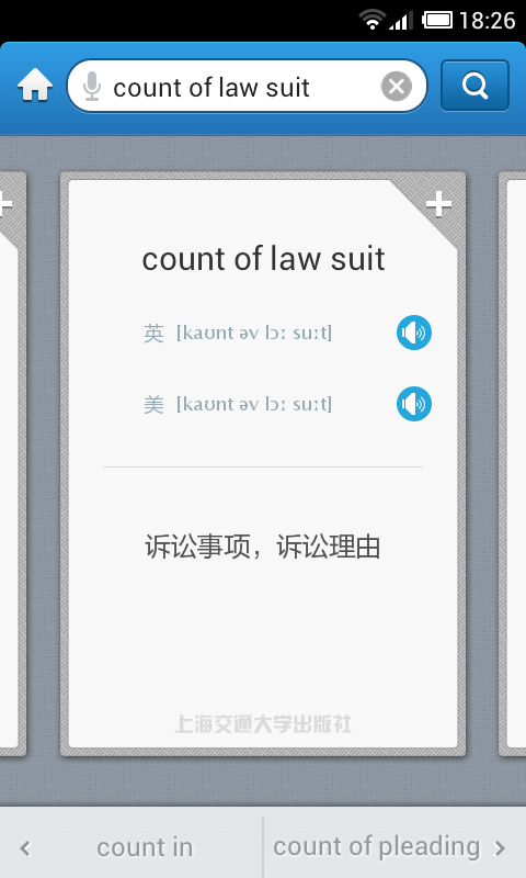 法律英语词典app是一款英语词典软件,法律英语词典app为用户提供专业性英语词典翻译,让用户可以通过软件了解法律相关英语,为用户学习提供帮助。【软件特点】