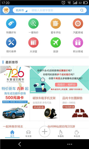 车家佳是中大元通云服务有限公司推出的立足于提供快速便捷汽车服务,改善用户车生活,集车辆服务预约、4S助理、资讯活动推送、私家车管理、违章查询、车友服务、汽车互联为一体的应用。【更新日志】