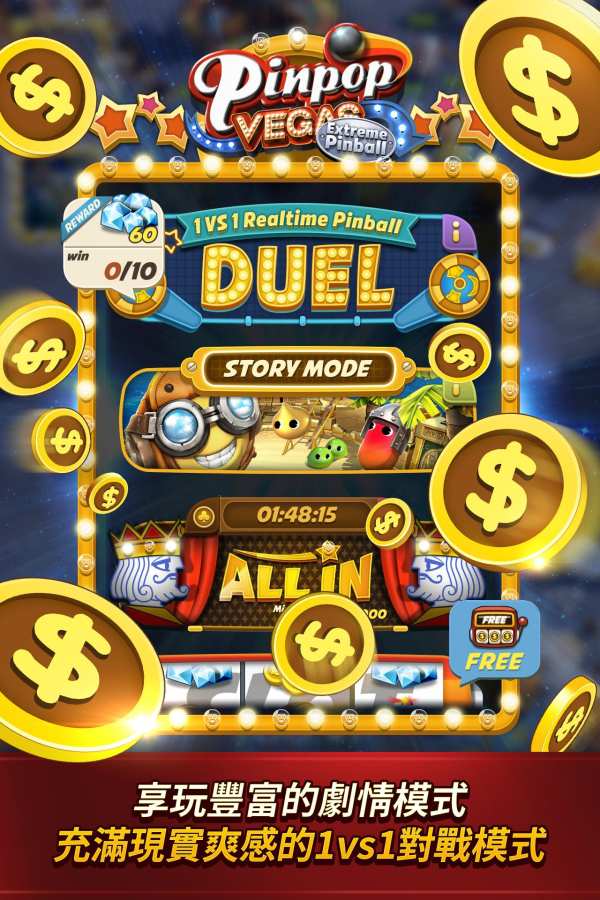 维加斯弹球台简易的操作,任何地点、任何人都能轻松上手!运用写实的物理引擎,掌握弹珠的轨迹获得高分,或者透过战斗模式与竞争对手相攻防,感受紧张刺激的游戏!