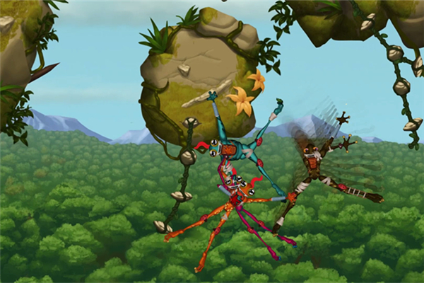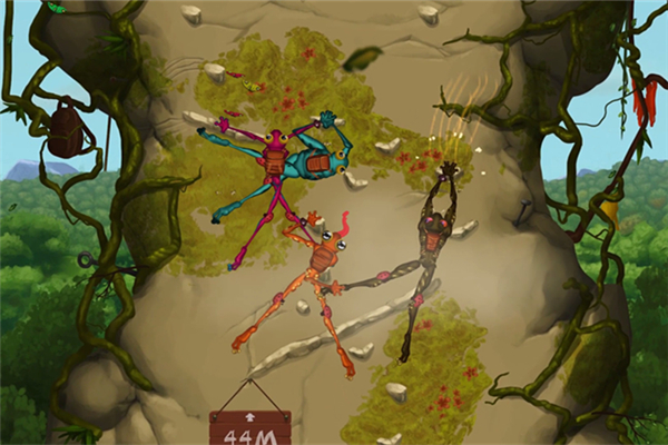 游戏以其夸张的攀爬动作、趣味横生的玩法以及刺激的背景音乐让玩家们爱不释手,游戏主打的则是多人局域对战,出发点是聚会时大家能一起欢乐游玩。最大四人对战时,狭小的舞台实在难以容下四个“大青蛙”,经常没抓住攀岩点而误抓到别的玩家,最后只能一起玩完!(笑)这2人就挂在一起了。