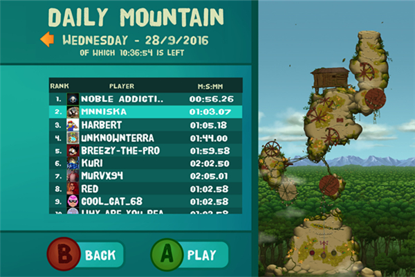 玩家需要控制一只青蛙不断地向上攀爬,通过双手的吸附能力和惯性摆动原理实现向上爬动,由于腿部无法控制,因此操作起来会有一定的难度,不仅如此,场景中松动的石块和细细的植物都会对攀爬造成不少的难度。