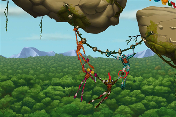 爬扎,吊在危险的藤蔓上,穿越多种危险刺激的组合。单独游戏或者叫上3个好朋友!本地1-4玩家联机游戏