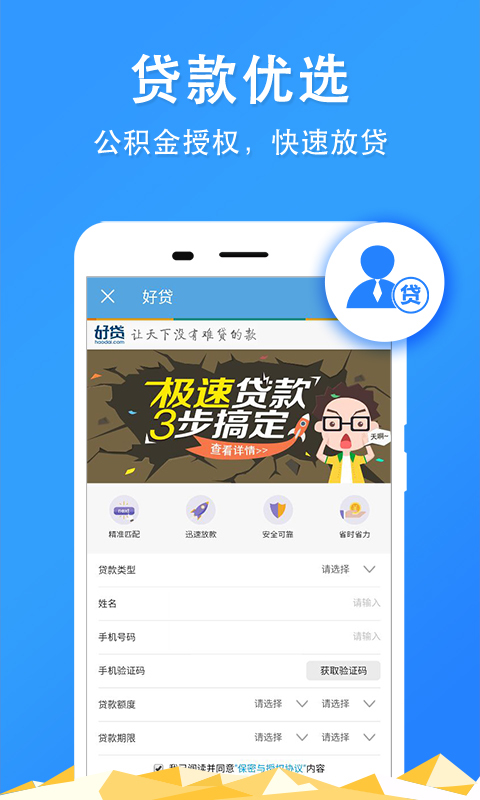 公积金贷款:一键申请,审核简单,飞速放款;公积金信用卡:在线办卡,成功率更高,审批速度更快,更有白金卡等多种卡种任君挑选。