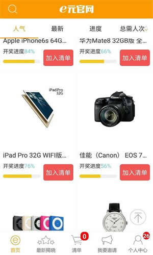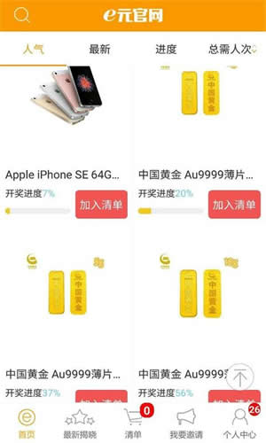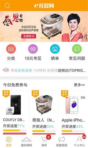 e元官网app是一个可以天天免费抽奖和1元实现大奖梦的超赞APP,e元官网app让你1元成就大梦想,e元官网app繁多新潮品1元带回家,神器、手机、相机、电脑、黄金等价值不菲物品都在你手指一触间就能实现。【软件特点】