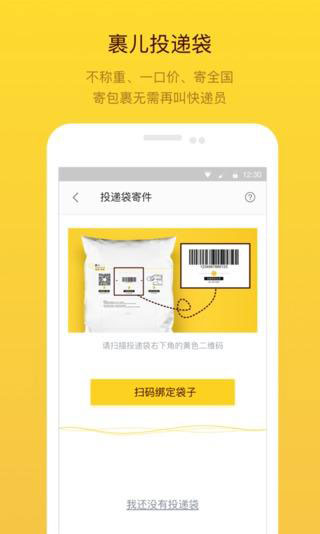 1、不叫快递员,自己9分钟就能寄出包裹,真的没sei了。2、裹儿投递袋上线,跟称重计价的时代saygoodbye,只要你能装,就一口价寄全国。