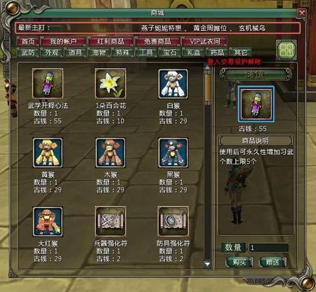 消费劲免——不消费免冲装,界面活动赠虚宝,打怪掉宝概率高。