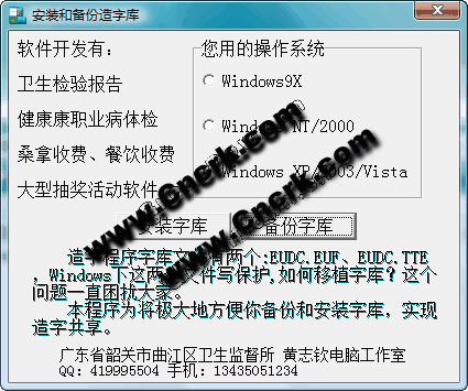 安装和备份造字库 V1.00 简体中文绿色免费版 也许你用造字程序解决了生僻字、特殊符号、化学式等问题,已经造出的字如何在其它机器上显示?重装系统后以前造的字怎样恢复?