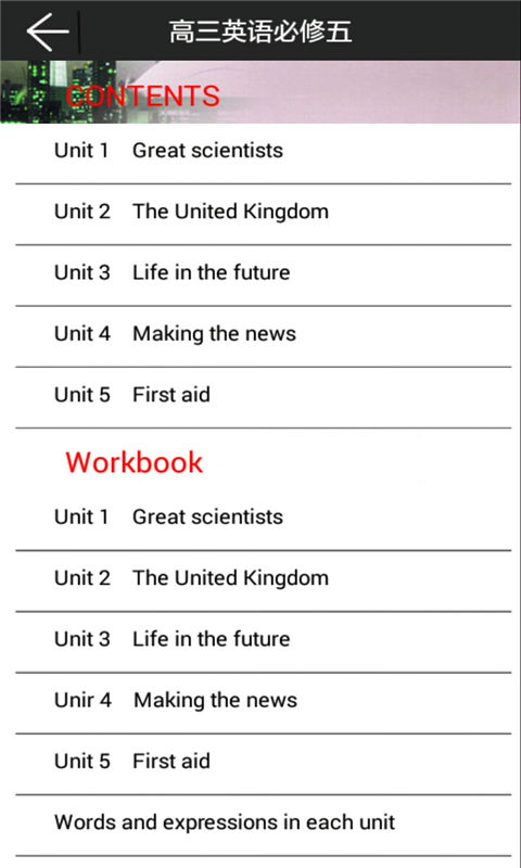 高三英语必修五app是一款学习类的软件,通过高三英语必修五app孩子可以方便的血虚高三英语知识,对于孩子的英语学习来说不错。【软件特点】