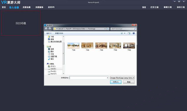 大师软件里,然后在场景图里加入热点、文字,关联声音,完成一个简单的VR漫游的制作。
