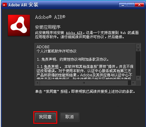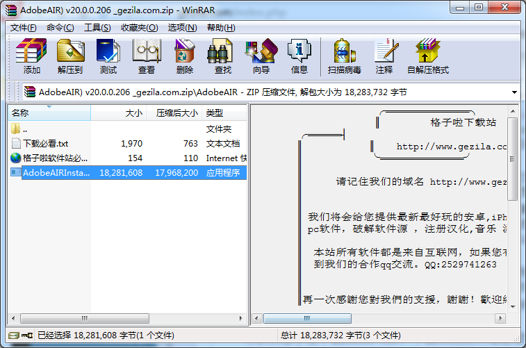 安装首先从本站下载Adobe Air。下载来的文件是压缩文件,将其应用程序双击打开。