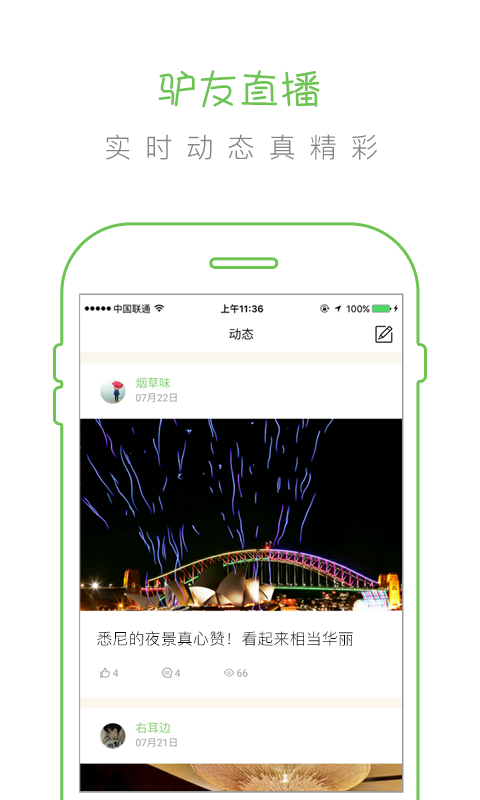 - 驴友直播,关注实时动态,在菌落里一起分享与讨论交流!