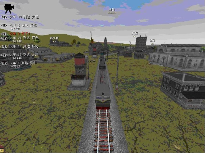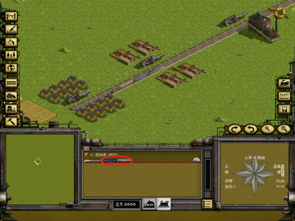哈哈,第一趟车缓缓驶出车站,车上带了253K的货物。这个图每个房子年产4乘客2邮件,所以一般的客运火车编组是2乘客1邮件,等装满一半再出发。客运火车特别是后期的高速客运火车最理想的是挂两节车厢,不过如果只装满一节的话就会亏本,毕竟人脑不可能每次都精确控制,所以比较可行的是挂3节车厢等装满一半后再出发,这样即使装了两节也不亏本。不过买的这个GP9是客货两用车,不能浪费了载重能力,加挂一节餐车,增收20%的乘客收入。注意开局只能开一列火车,如果开了两列,兰斯的需求很快就会降低,后续发展就没有后劲了。
