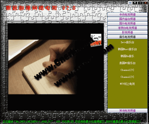 免费在线网络电视软件,包含中央1-12,国内个省市电视台,国外电视台,港澳台电视台,及影视音乐等频道,实时在线播放。