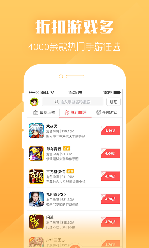 一、游戏大厅:可搜索并下载您感兴趣的手游;