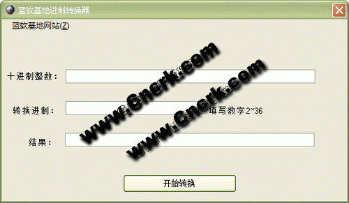 蓝软基地进制转换器软件可以把十进制数转换为2~36任何一种进制的结果(详细软件说明书下载http://down.bbs156.cn)