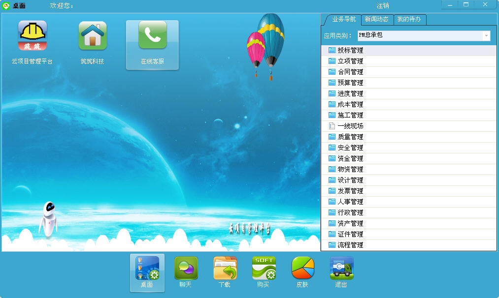 其中项目管理功能包括:投标管理、立项管理、合同管理、预算管理、成本管理、施工管理、质量管理、安全管理、资金管理、物资管理等20多个模块。