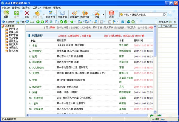小说最新章节及时提醒更新,是追书必备之选。每天用户使用阅读器更新600多万本书。