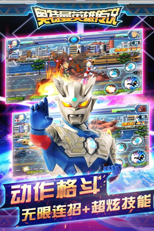 1、忠于原著:熟悉的奥特曼们,还有各自的招牌技能。2、动作格斗:无限连招+超炫特技,给你真正的战斗快感。