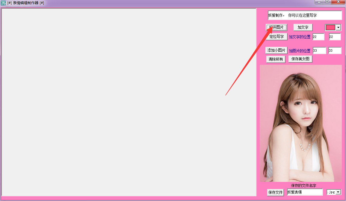 1、解压压缩包,打开应用软件2、打开后点击打开图片,并选择需要编辑的表情图片