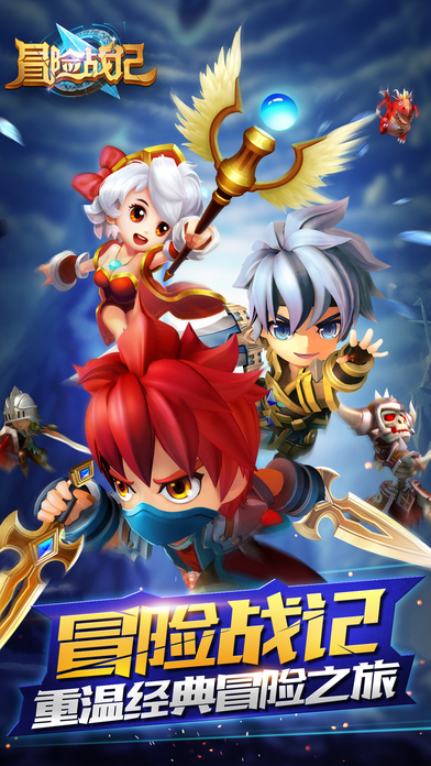 还记得那些年一起追过的冒险游戏吗?还记得小时候手捧黑白游戏机玩到忘记写作业的美好童年了吗?《冒险战记》萌动来袭,还你儿时童年的最爱!Q萌可爱的人物形象,华丽而熟悉的操作技巧,萌软机灵的精灵小宠,《冒险战记》带你回到儿时,重新称霸游戏,书写自己的冒险旅程!