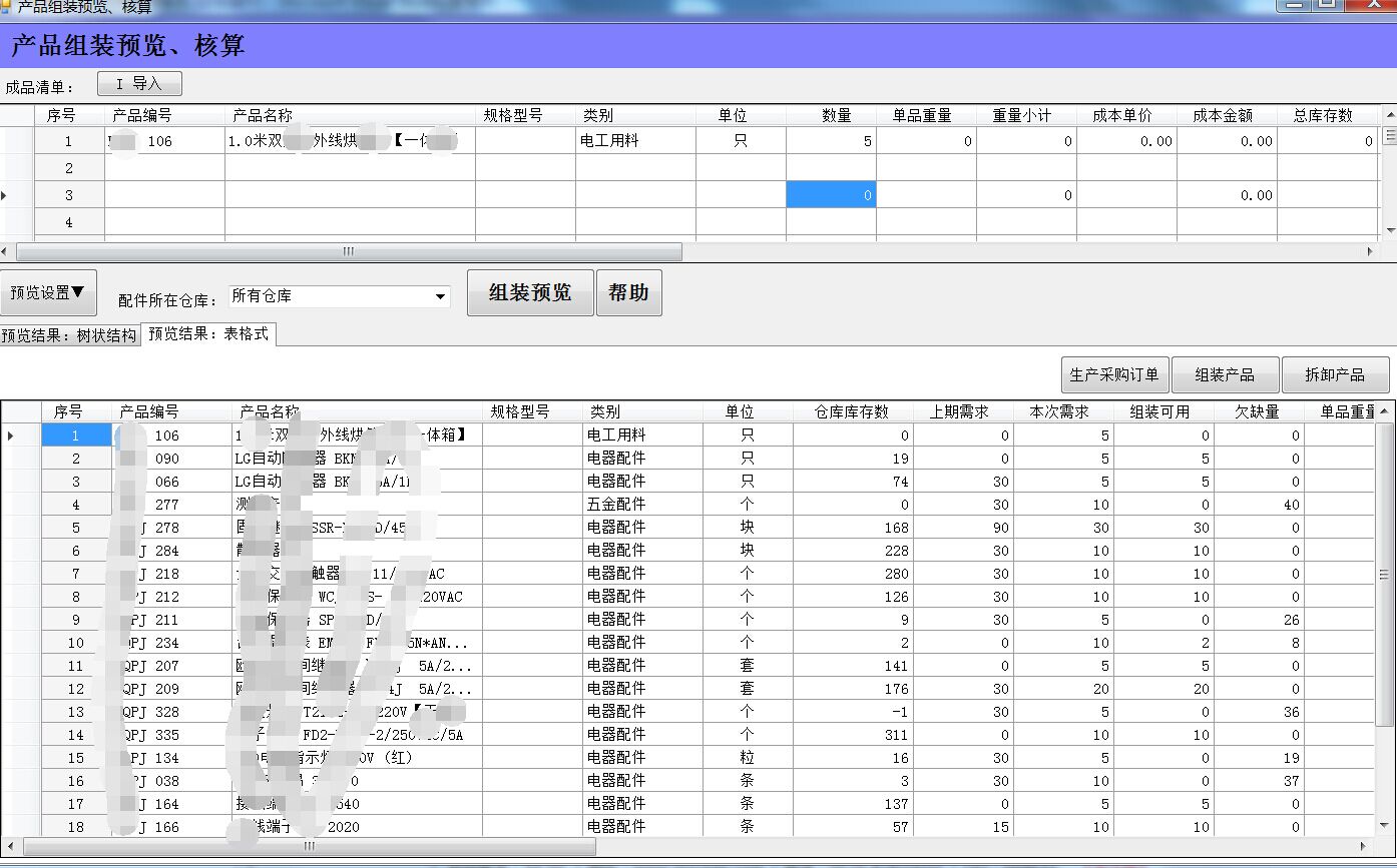 产品的组装关系设置、图片、订单数、价格记忆、组装成本核算