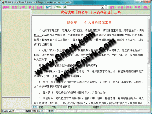 方便实用的个人文档资料管理工具,绿色免费软件,无功能限制。自主研制,绝无后门