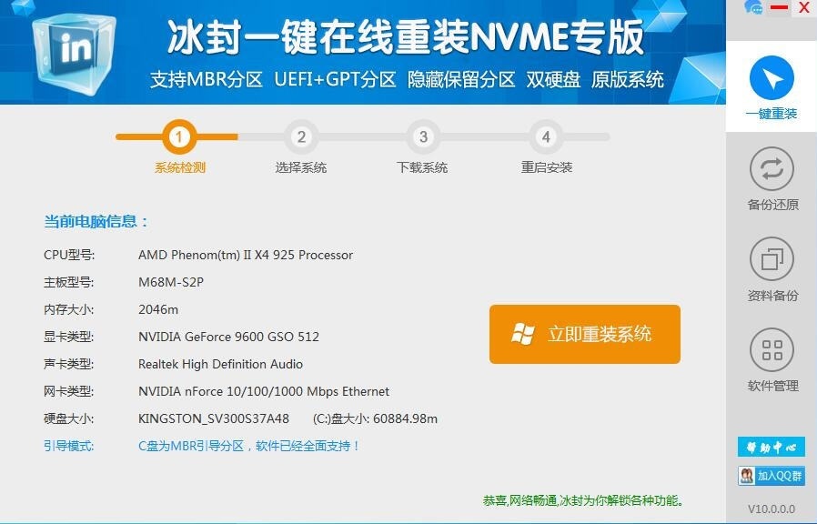 完美支持一键重装xp/win7(32/64位)/win8(32/64位)位操作系统以及互相转换,一机多系统更加简单便捷