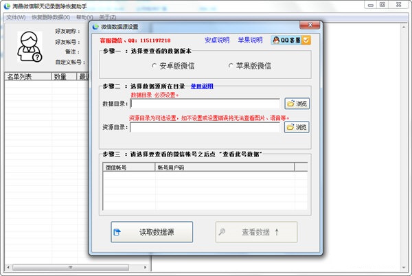 1、将手机中的微信聊天数据导出到电脑上,软件自带一键导出操作简单也可以手动导出2、打开“微信聊天记录删除恢复助手”,选择微信版本,然后设置好相应目录,点击“读取数据源”按钮,然后软件会将目标文件夹中的微信号读取出来,点击想查看的微信号后再点击查看按钮即可。如下图