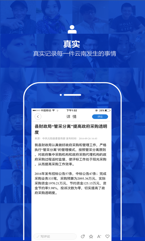 云南通元阳县客户端是由元阳县委县政府与新华社云南分社合作,开发建设“由党委政府自主掌控、发布地方政务信息和新华社权威内容”的移动终端门户,利用目前已广泛普及的手机客户端等新媒体手段,传递党委政府权威新闻信息、引导舆论、服务民生,形成符合中央有关新媒体建设要求、党委政府可自主掌控、发挥主渠道作用的新媒体服务平台。
