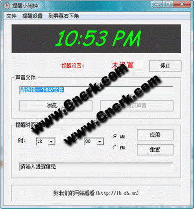 这是一个用于定时提醒的小软件,当初是送给一个正在减肥的朋友,帮他定时提醒做运动。 软件可以设置提醒时间,提醒音乐,提醒信息。