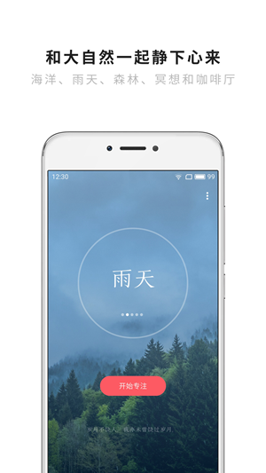 潮汐app是一个让你可以暂时放下手机、专心投入的 App。每当你想开始一段专心投入的时光,你可以在「潮汐」中选择一个自然场景并开始专注。接下来的时间里,伴着海浪、雨声、森林、冥想或是咖啡厅的环境声音,你会心无旁骛专心投入。之后,你可以休息一小会儿或是继续下一段专注。