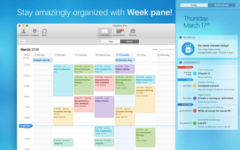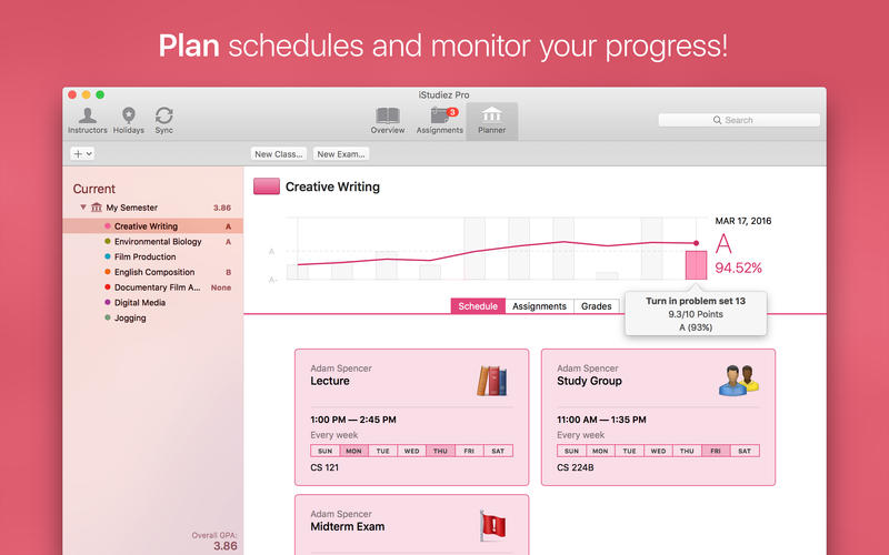 允许你管理你所有的功课和作业:提供日期,课程和优先排序,设置截止日期,并跟踪您的完成qing'kuang情况。