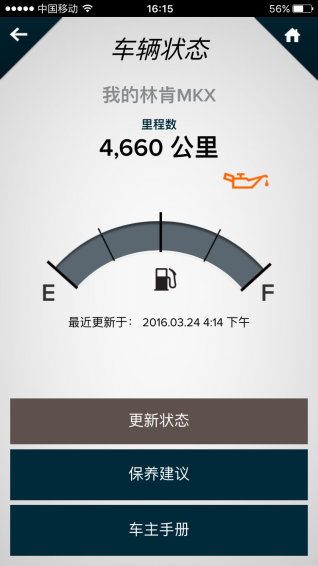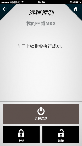 远程功能需车辆安装有嵌入式无线通信模块,免费服务期为三年。目前2016款MKX部分车型选装。远程功能可能受到当地无线蜂窝网络信号强度和覆盖的影响。实时车辆定位功能需车辆安装有嵌入式通信模块和GPS模块,且符合当地法规的GPS信号可以传回云端。