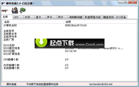 硬件快捕 2.0 绿色特别版 硬件快捕 现在市面上有许多电脑低价处理,但经过奸商技术处理后,在你查看电脑配置时,64M的内存可以显示为512M,10G硬盘可以让你以为配置的是80G,实际是落后淘汰处理器可显示为奔4 2.8GHz。“硬件快捕”就是一款揭穿奸商这种伎俩的易用、实用的软件,需要时用来测一测,有备无患呀!