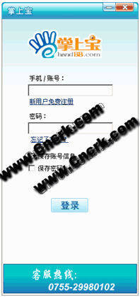 安装完毕,双击桌面快捷图标即可通过输入您的账号登入掌上宝软件版。如果您还没有注册的话,请先点击界面上的免费注册。