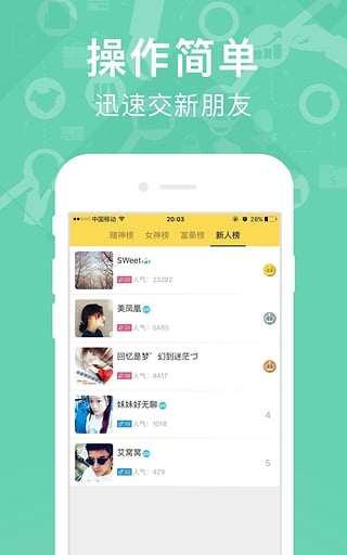 送礼物,发红包,玩猜拳,压筛子,拼牛牛,丰富的娱乐互动游戏让你更快搭讪约会心仪的TA